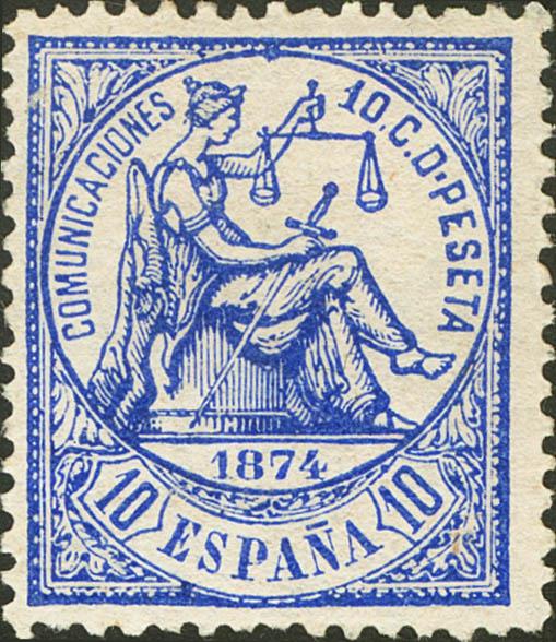 (★) 145. 1874. 10 cts azul. Color intenso. MAGNIFICO.