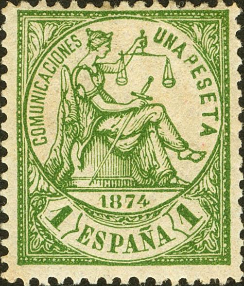 ★ 150F. 1874. 1 pts verde. FALSO POSTAL TIPO III. MAGNIFICO.