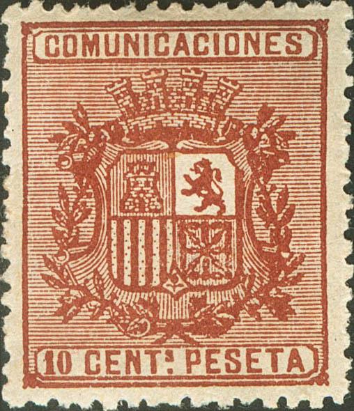 ★ 153. 1874. 10 cts castaño. Color intenso y excepcional centraje. PIEZA DE LUJO.