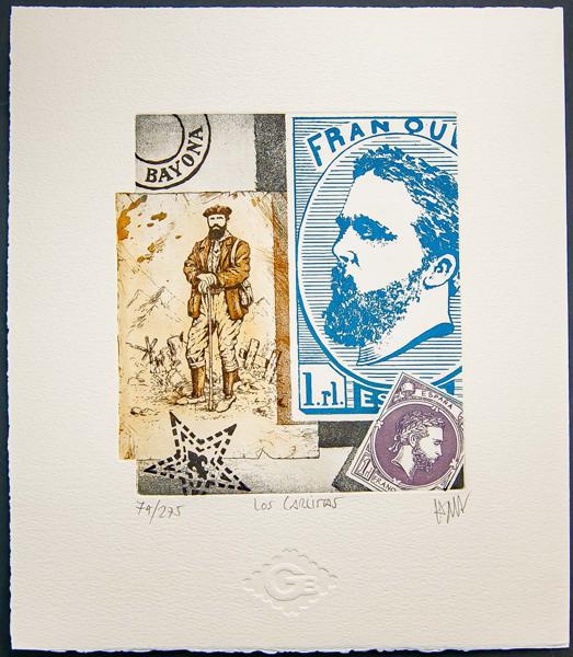 (2000ca). Conjunto de dos libros LA ORGANIZACION DEL CORREO CARLISTA, de Eduardo Escalada y EL CORREO CARLISTA VASCO NAVARRO, de Julio Damián Peñas Artero, ambos de la colección Discursos Académicos (XI y XXIII) de la Academia Hispánica de Filatelia, incluye un grabado de sellos Carlistas de Ramiro de Undabeytia editado por Filatelia Hobby, una carpeta con artÃculos de sellos Carlistas (ideal como información) y una tarjeta de época de Don Jaime en su despacho. A EXAMINAR.