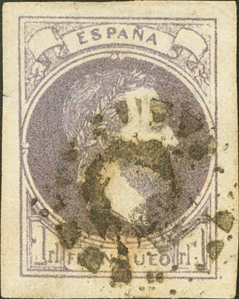 (★) 127s. 1872. 1 pts lila (márgenes grandes). SIN DENTAR. MAGNIFICO. Edifil 2022: 265 Euros