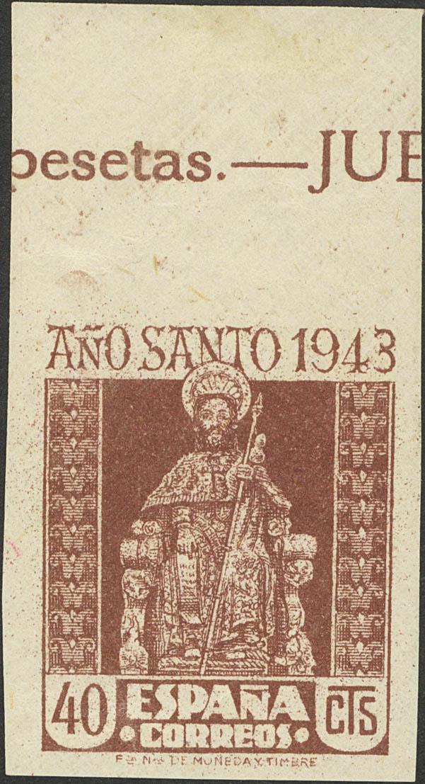 ★ 962s. 1943. 40 cts castaño, borde de hoja. MAGNIFICO Y RARO, MUY ESPECTACULAR. Cert. CEM. Edifil 2023: +++425 Euros
