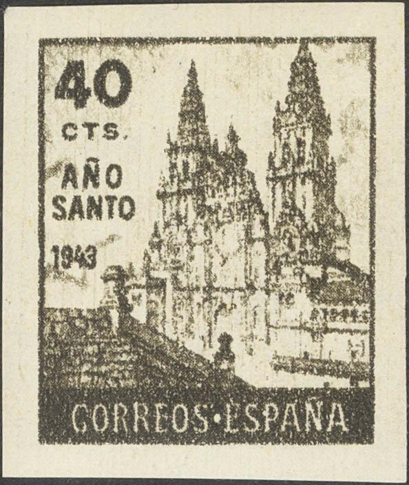 ★★ 959P. 1943. 40 cts negro. ENSAYO DE COLOR y SIN DENTAR, con el diseño adoptado para el 75 cts. MAGNIFICO Y RARISIMO. (Gálvez, 3690)
