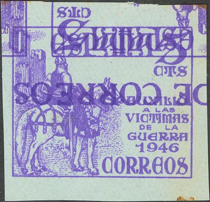(★) 1062edi. 1949. 5 cts lila sobre papel azulado. DOBLE IMPRESION, UNA INVERTIDA (sin dentar). MAGNIFICO.