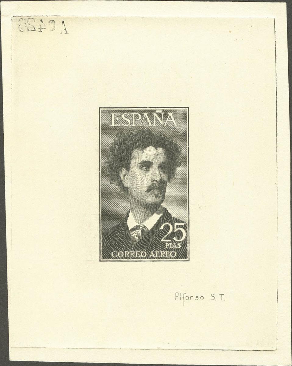 (★) 1164P. 1955. 25 pts verde oscuro. PRUEBA DE PUNZON. MAGNIFICO Y RARISIMO.