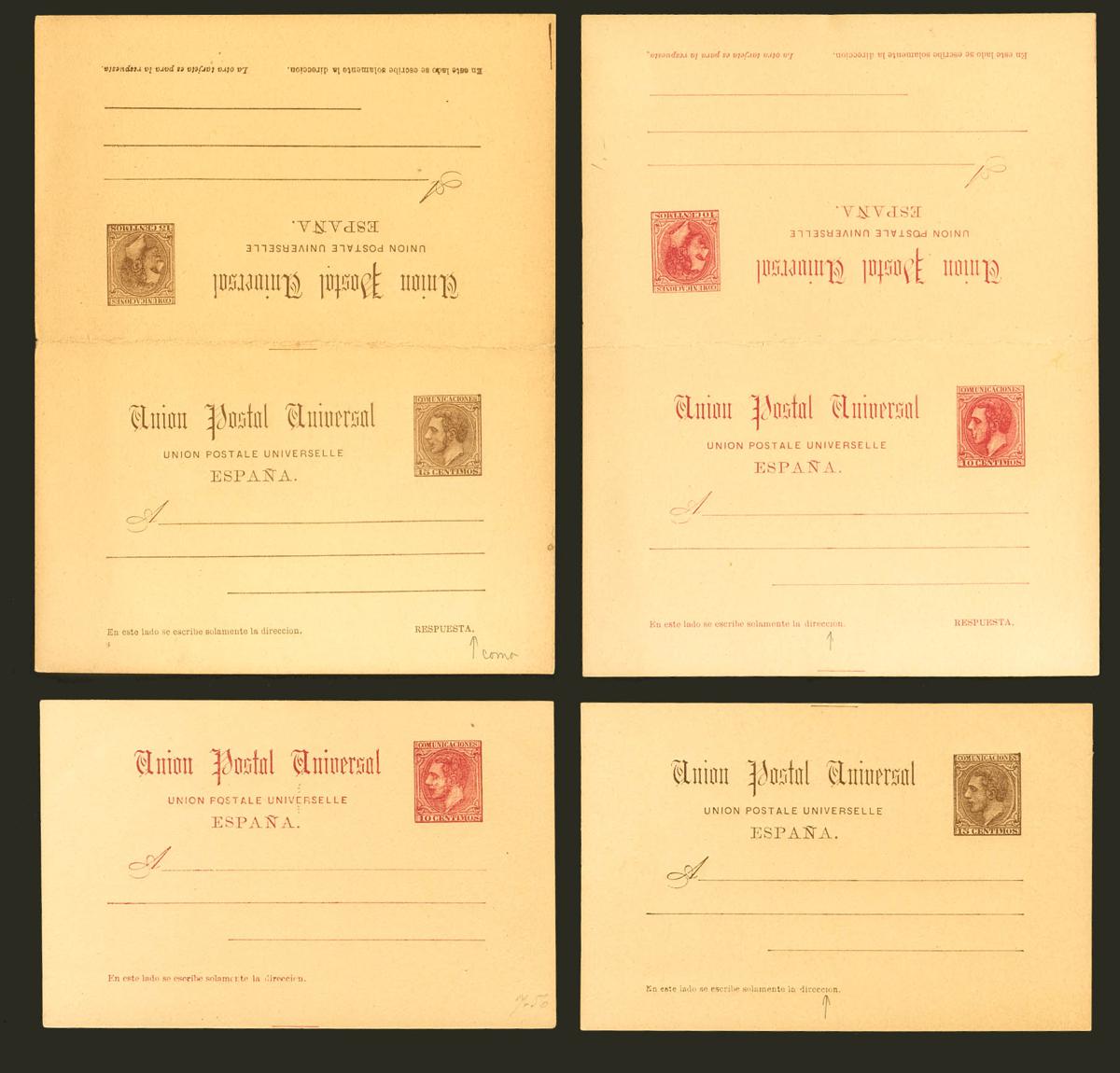(★) EP15/18. 1884. Juego completo de cuatro Tarjetas Entero Postales, incluyendo las de ida y vuelta. MAGNIFICO. Edifil 2023: 182 Euros