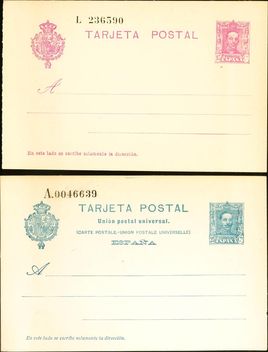 (★) EP57, EP59. 1925. 15 cts violeta lila y 25 cts azul sobre Tarjetas Entero Postales. MAGNIFICAS. Edifil 2023: 150 Euros
