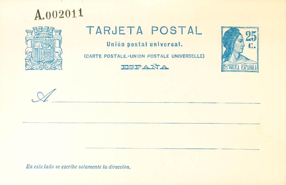 (★) EP71. 1934. 25 cts azul sobre Tarjeta Entero Postal. MAGNIFICA. Edifil 2023: 89 Euros
