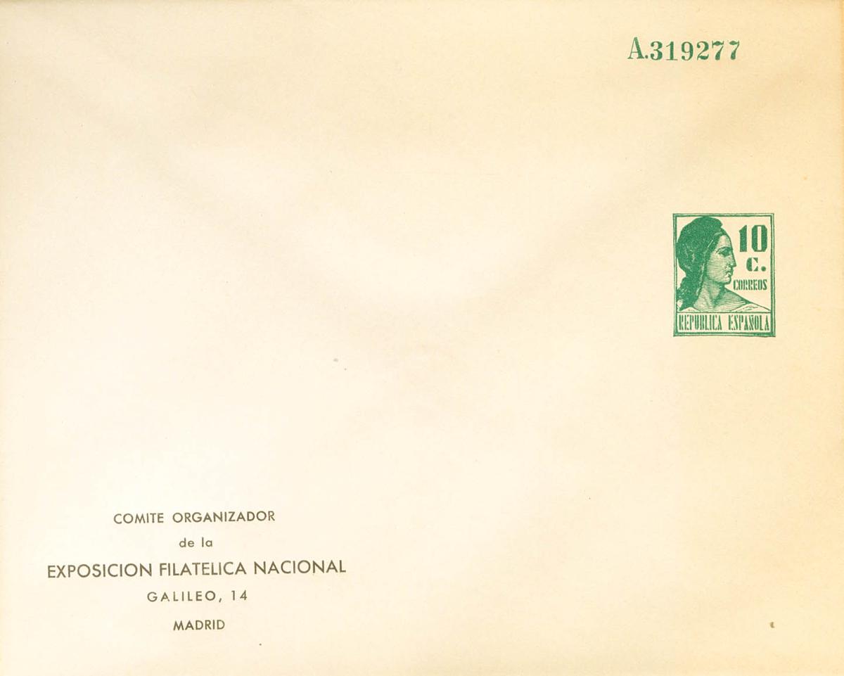 (★) EP1170. 1932. 10 cts verde sobre Entero Postal Privado. EXPOSICION FILATELICA NACIONAL. MAGNIFICO Y MUY RARO. (Láiz 2006: 300 Euros)