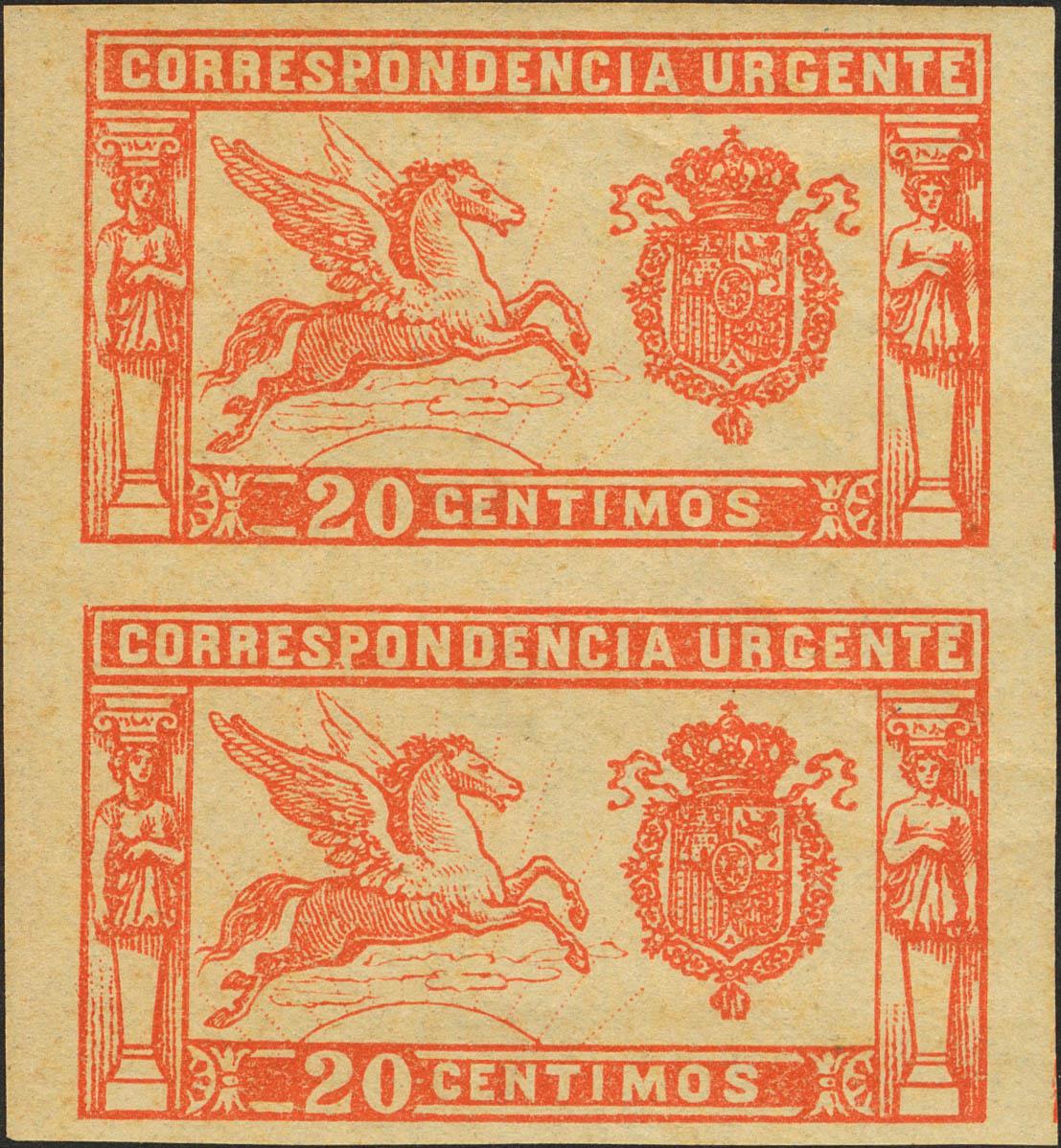 ★★ 256s(2). 1905. 20 cts rojo, pareja. SIN DENTAR. MAGNIFICA Y RARISIMA. Edifil 2020: ++540 Euros