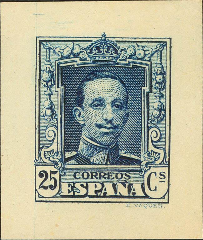 (★) 317P. 1922. 25 cts azul ("2" de "25" con base curvada). PRUEBA DE PUNZON. MAGNIFICA Y MUY RARA. (Gálvez 1994)