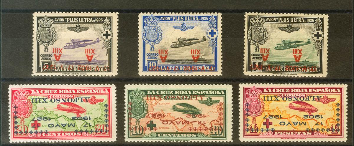 ★ 363/72hi. 1927. Serie completa, seis valores. SOBRECARGA INVERTIDA. MAGNIFICA Y RARA. Edifil 2020: 640 Euros