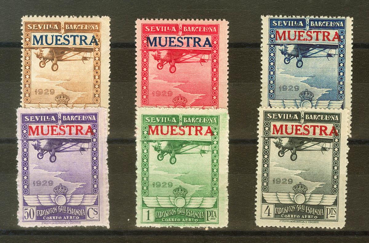 ★★ 448/53M. 1929. Serie completa. MUESTRA, en letras gruesas y NºA000.000. MAGNIFICA Y RARA. Edifil 2020: +420 Euros