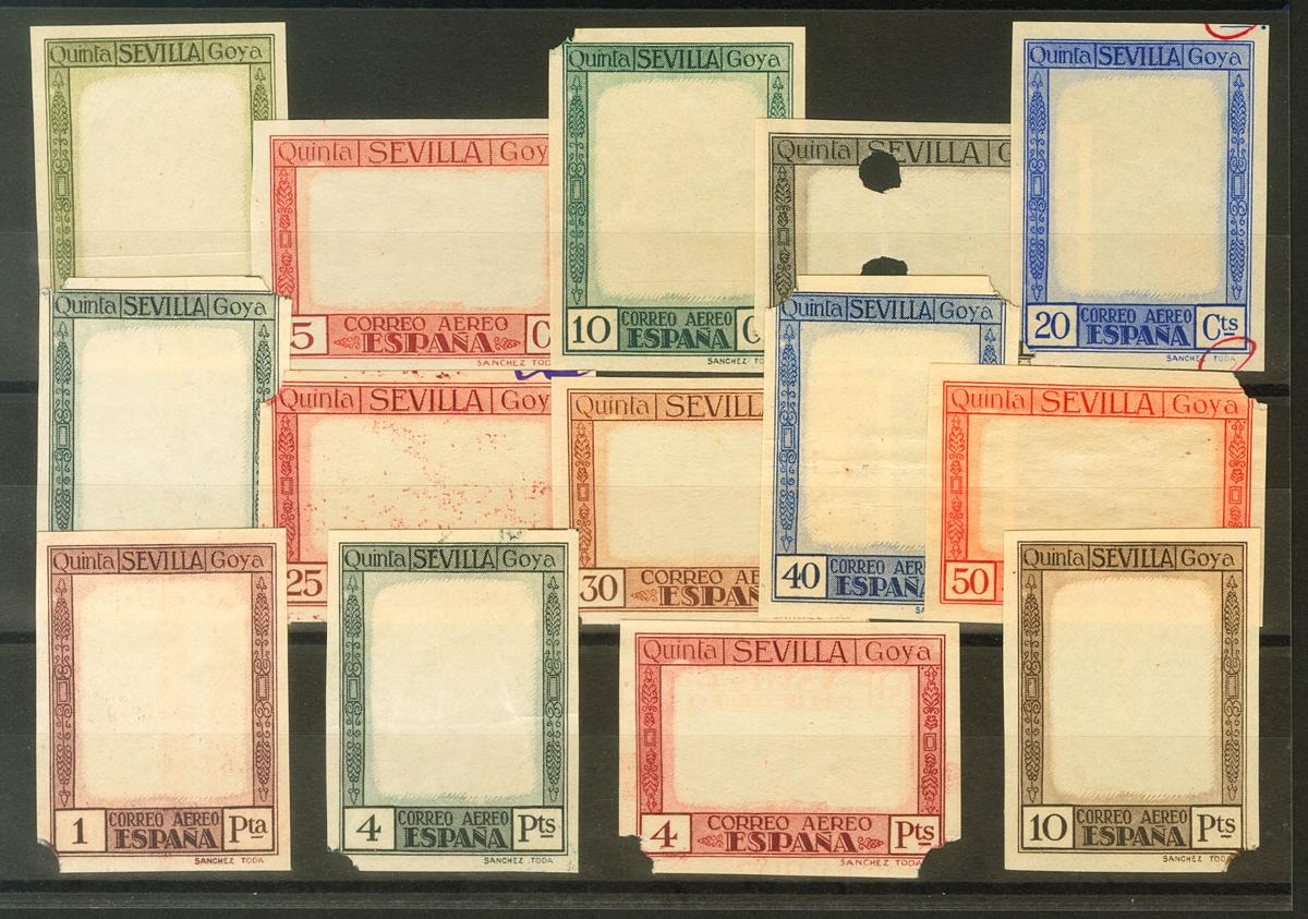 (★) 517/30P. 1930. Juego completo de los catorce ENSAYOS DE PLANCHA DE LOS MARCOS, en los colores adoptados (con taladro). MAGNIFICOS Y RARISIMOS. (Gálvez CA230/43)