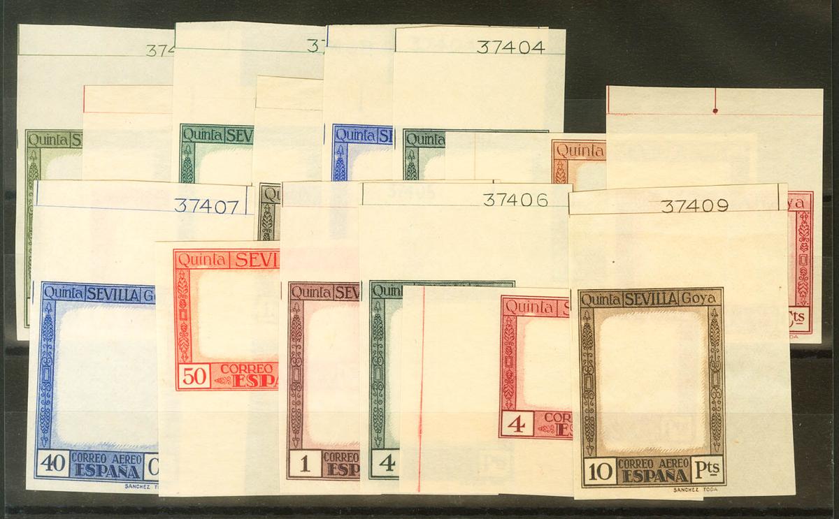 (★) 517/29P. 1930. Conjunto completo de catorce valores de los ENSAYOS DE PLANCHA DE LOS MARCOS, en los colores adoptados. MAGNIFICOS Y RAROS. (Gálvez CA230/43)