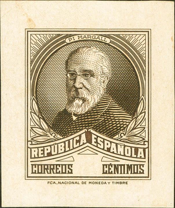 (★) 655P. 1931. Sin valor, castaño negro. PRUEBA DE PUNZON. MAGNIFICA Y RARISIMA, NO RESEÑADA EN GALVEZ EN ESTE COLOR.