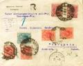254. 1911. 1 pts carmín y diversos valores. Certificado de ZARAGOZA a PFERZHEIM (ALEMANIA). Al dorso llegada. MAGNIFICA Y ESPECTACULAR FRANQUEO DE DIFERENTES EMISIONES CADETE-MEDALLON.