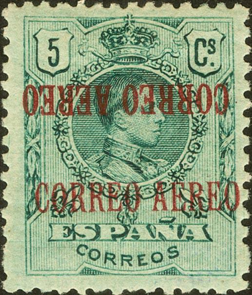 ★ 292hhi. 1920. 5 cts verde. SOBRECARGA DOBLE, una de ellas INVERTIDA. MAGNIFICO. Edifil 2020: 94 Euros