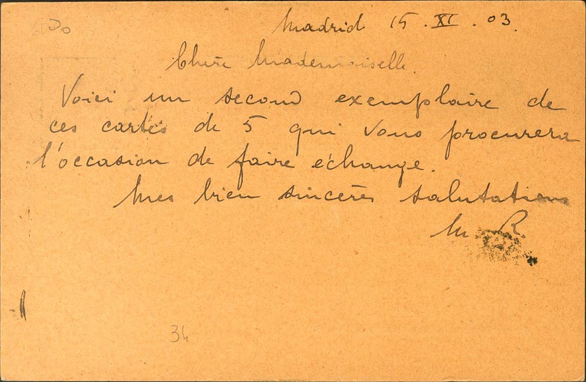 EP34, 242. 1903. 5 cts verde sobre Tarjeta Entero Postal de MADRID a SUIZA, con franqueo complementario de 5 cts verde. MAGNIFICA.