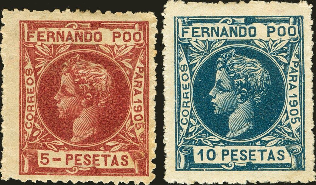 ★ 150/51N. 1905. 5 pts carmín y 10 pts azul oscuro (valores clave). Nº000,000. MAGNIFICOS. Edifil 2018: 285 Euros