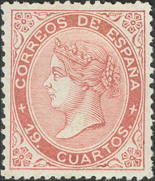 ★ 90. 1867. 19 cuartos rosa. Color muy intenso y excelente centraje. PIEZA DE LUJO, SIN DUDA UNO DE LOS MEJORES EJEMPLARES CONOCIDOS. Cert. COMEX.