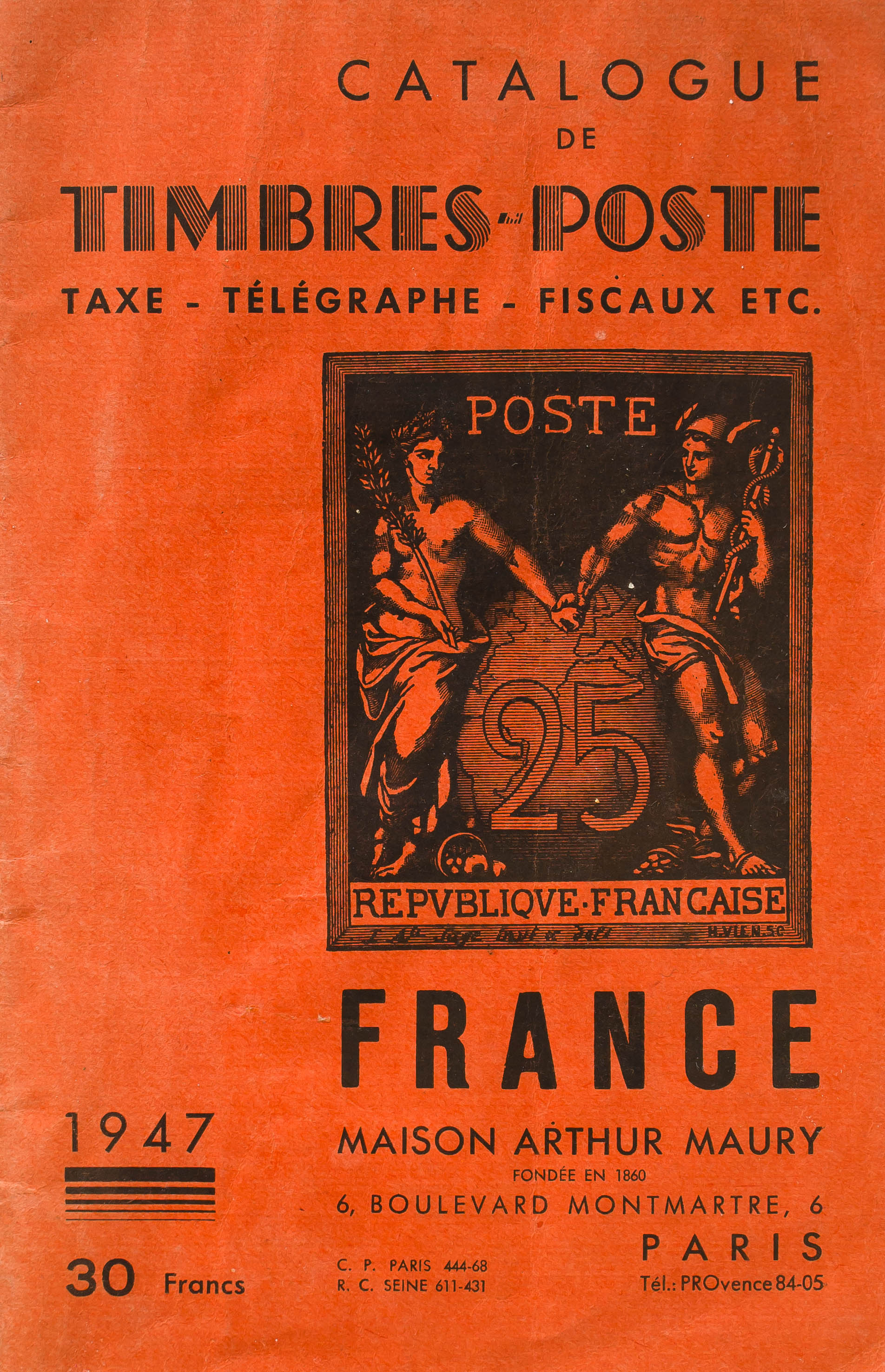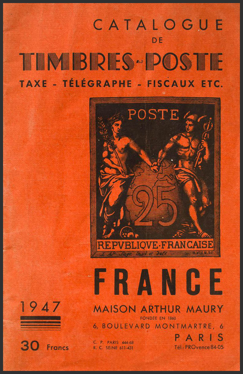 1947. CATALOGUE DE TIMBRES-POSTE DE FRANCE. Maison Arthur Maury. ParÃs, 1947.