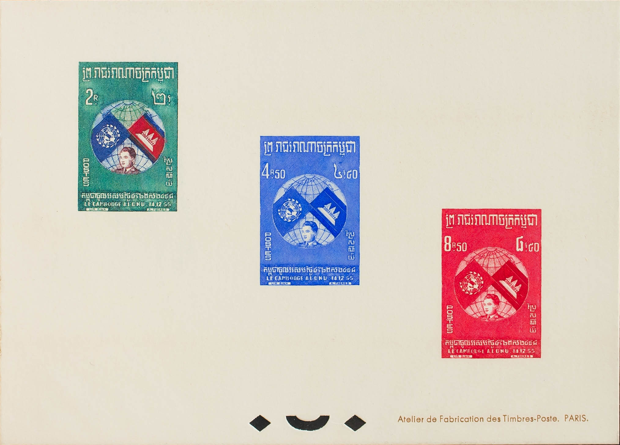 (★)Yvert 63/65. 1957. Serie completa. PRUEBA DE LUJO COLECTIVA (Carnet UPU Otawa, tirada de veinticinco). MAGNIFICA Y MUY RARA.