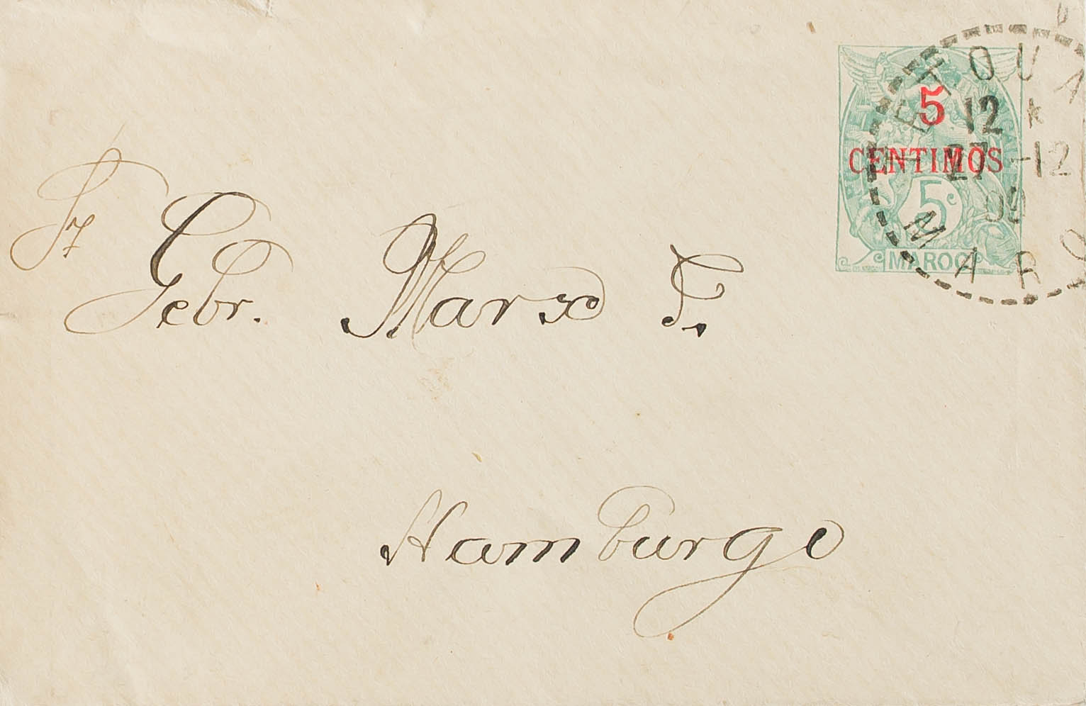 1909. 5 cts sobre 5 cts verde. TETUAN a HAMBURGO (ALEMANIA). Matasello TETOUAN / MAROC. MAGNIFICA.