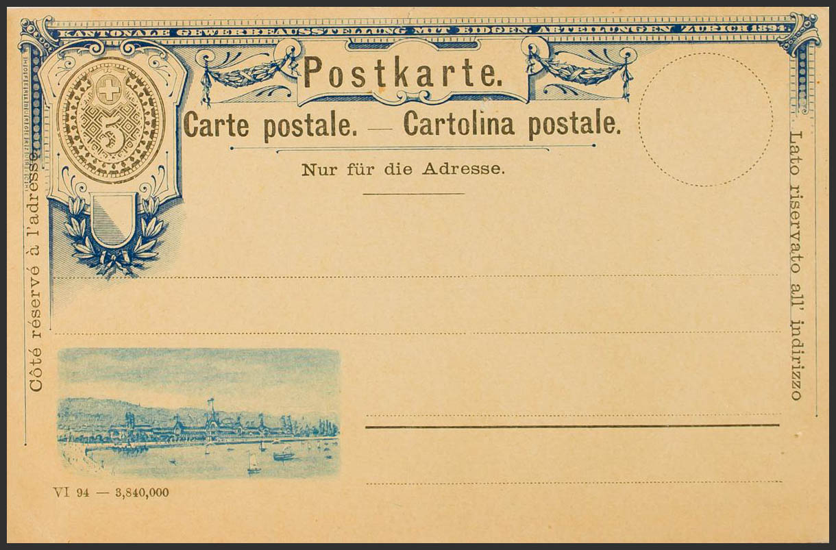 (★)1894. 5 cts gris sobre Tarjeta Entero Postal de Zurich, en azul. MAGNIFICA Y RARA.