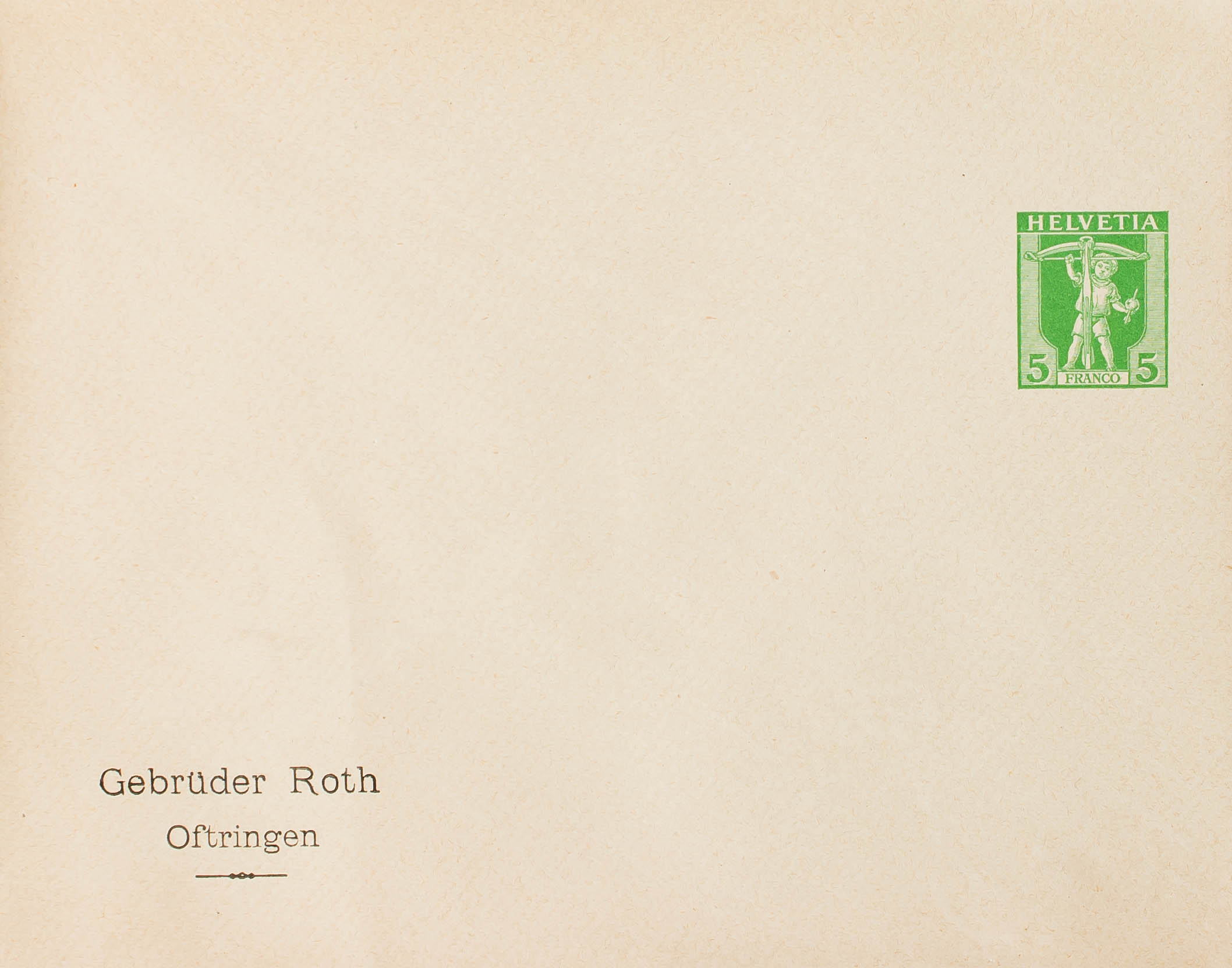 (★)1907. 5 cts verde sobre Entero Postal Privado GEBRÜDER ROTH. MAGNIFICO.