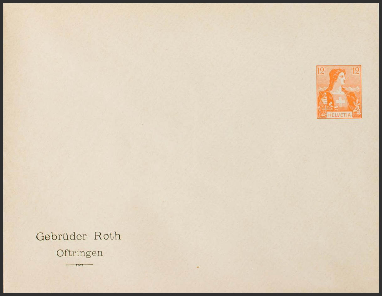 (★)1907. 12 cts amarillo naranja sobre Entero Postal Privado GEBRÜDER ROTH. MAGNIFICO.