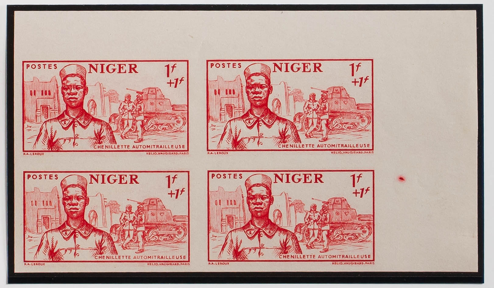 ★★Yvert 86a(4). 1941. 1 f + 1 f rojo, bloque de cuatro. SIN DENTAR. MAGNIFICO. Yvert 2013: 260 Euros