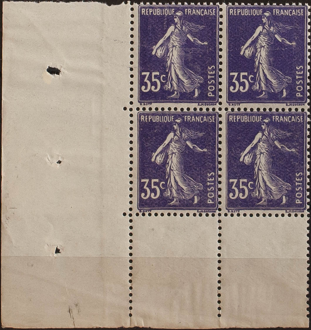 ★★Yvert 136(4). 1906. 35 cts violeta, bloque de cuatro (centraje habitual). BONITO. Yvert 2014: 1.700 Euros