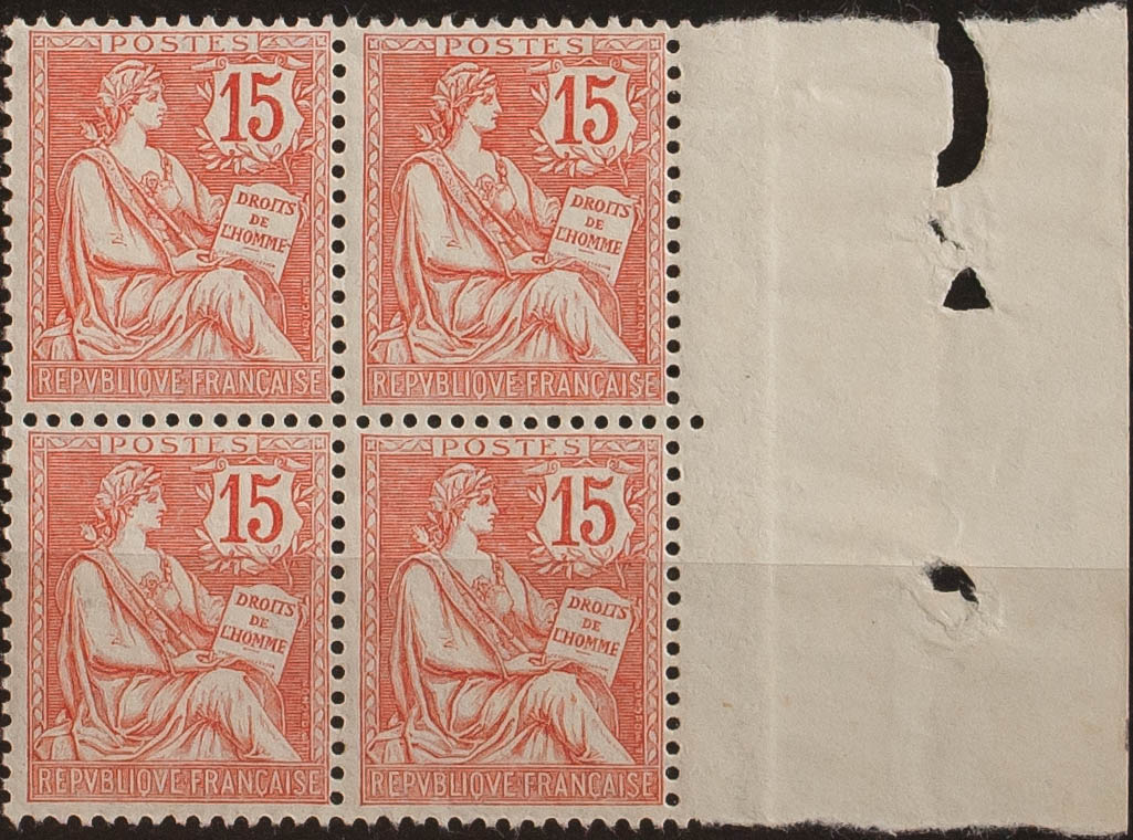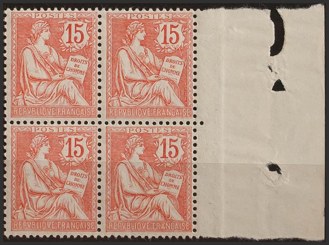 ★★Yvert 125(4). 1902. 15 cts bermellón, bloque de cuatro. MAGNIFICO. Yvert 2014: +240 Euros