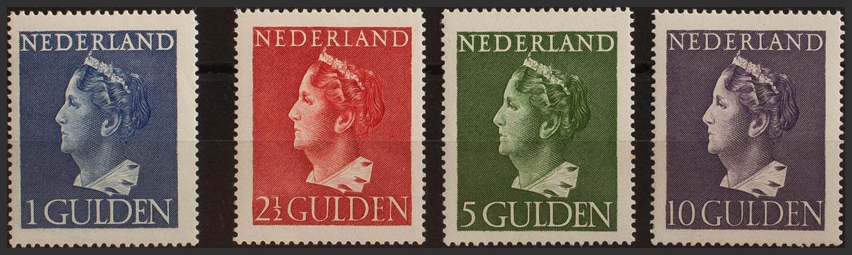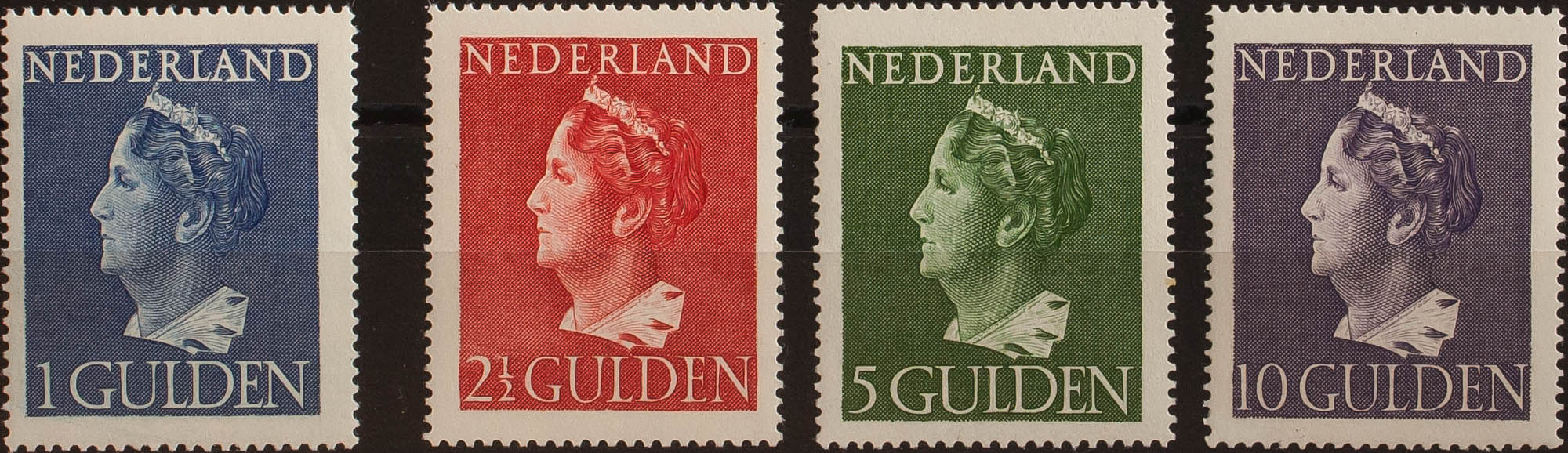★★Yvert 442/45. 1945. 1 g azul, 2 ½ g rojo, 5 g verde y 10 g violeta. Valores clave. MAGNIFICOS. Yvert 2012: 572,5 Euros