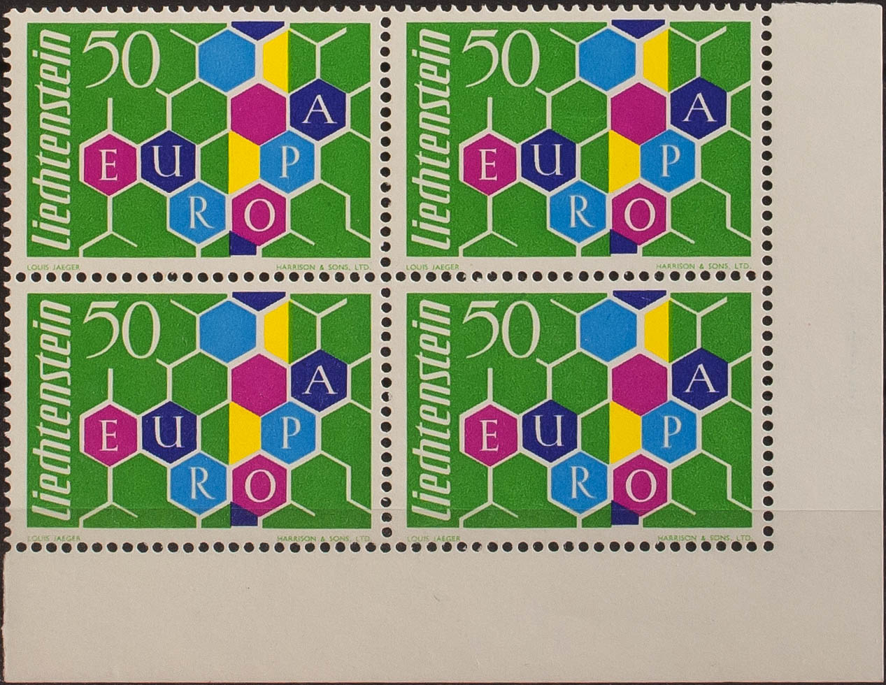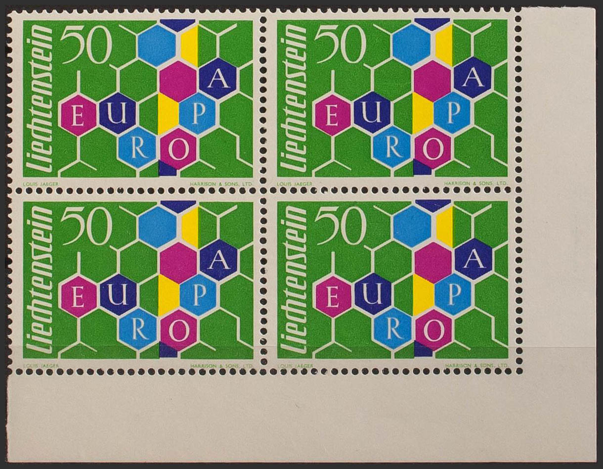 ★★Yvert 355(4). 1960. 50 r multicolor, bloque de cuatro. MAGNIFICO. Yvert 2016: 480 Euros