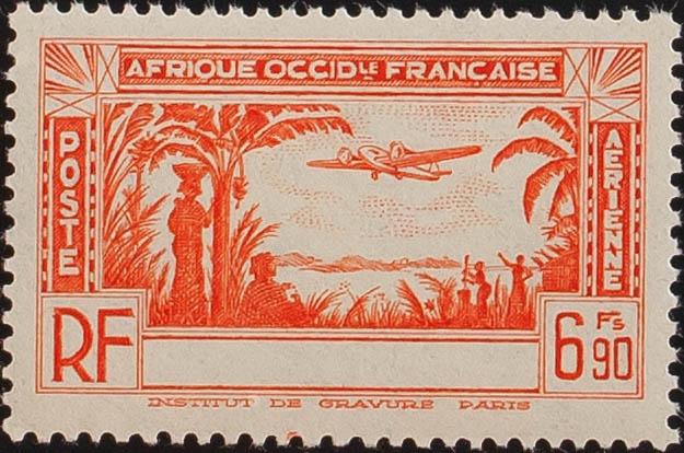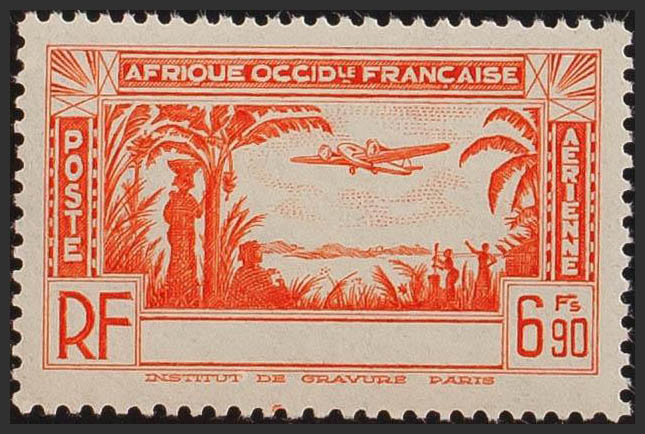 ★★Yvert 5a. 1940. 6´90 f naranja. Sin leyenda COTE D´IVOIRE. MAGNIFICO. Yvert 2013: 100 Euros