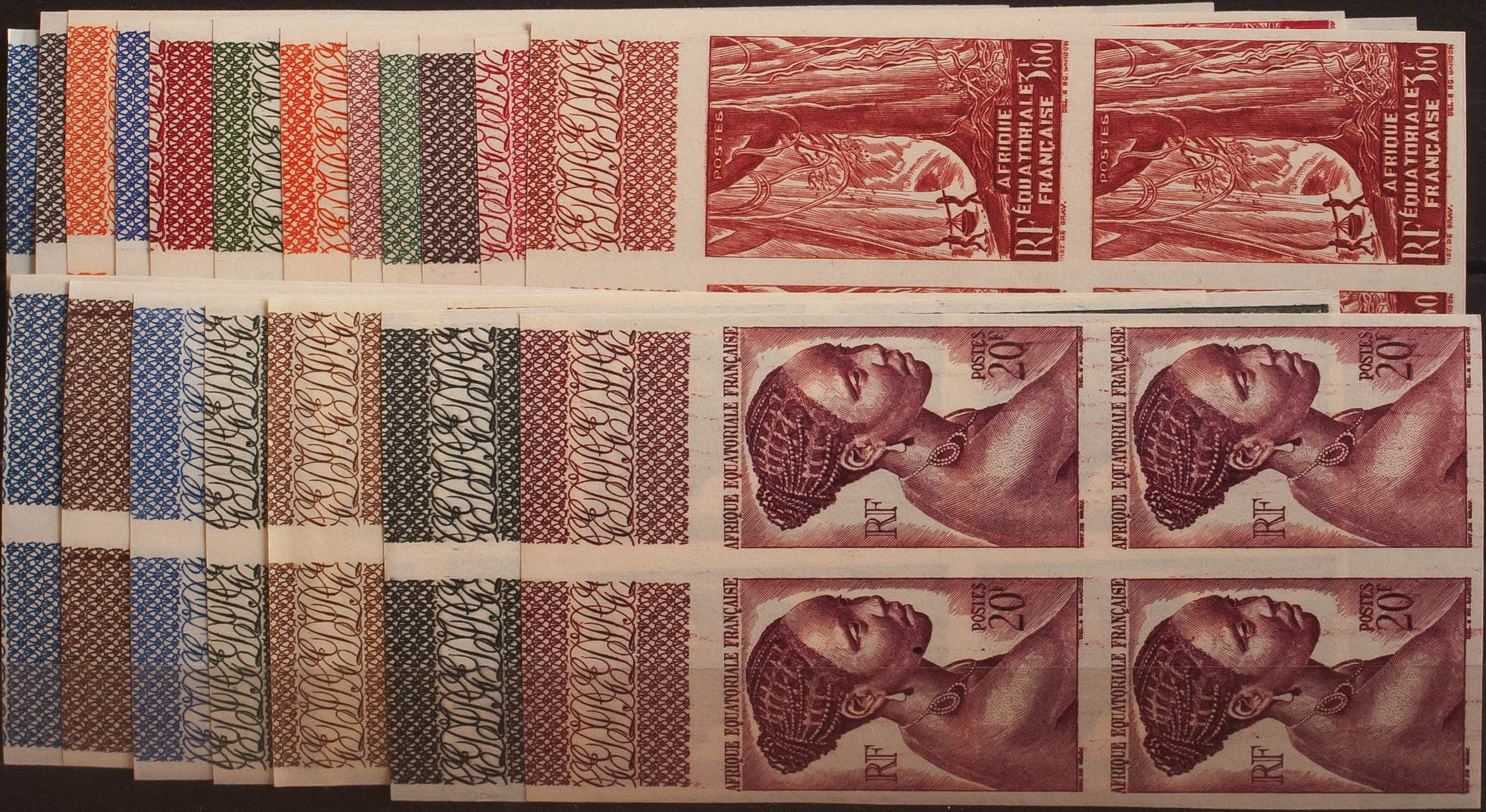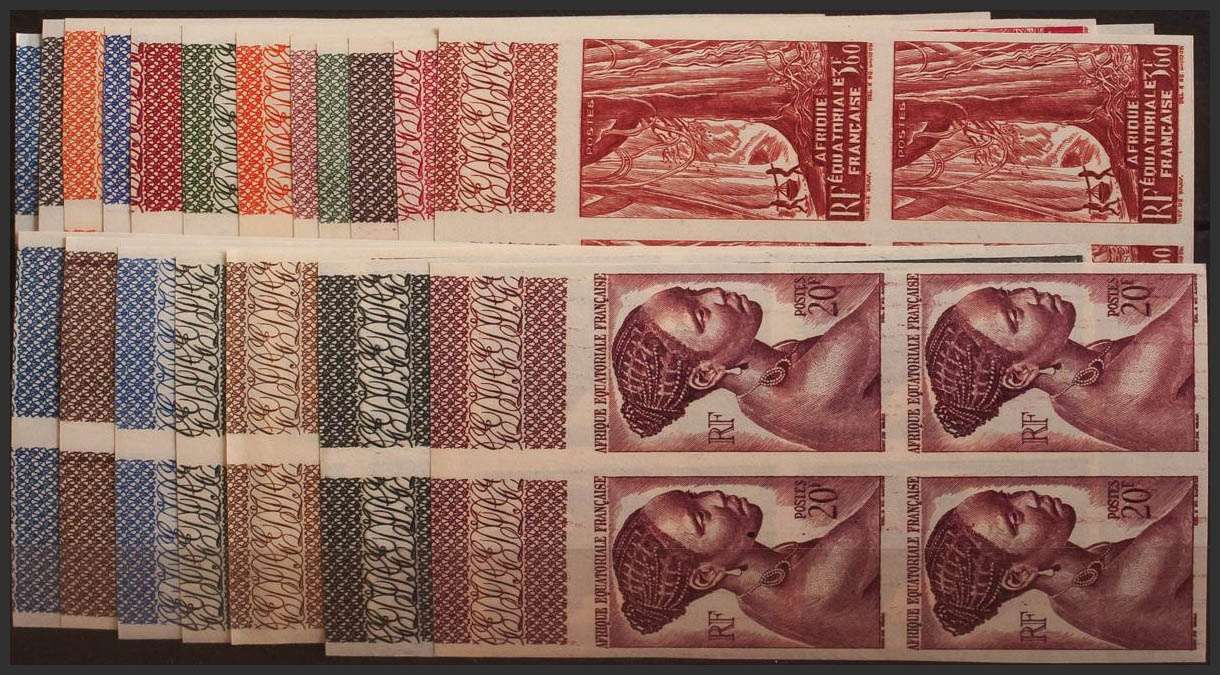★★Yvert 208/26(4). 1947. Serie completa, bloque de cuatro, borde de hoja. SIN DENTAR. MAGNIFICO. Yvert 2013: 600 Euros