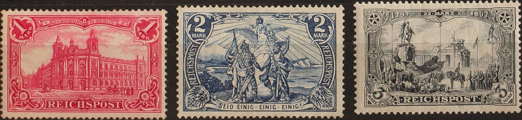 ★Yvert 61/63. 1900. 1 m carmÃn, 2 m azul y 3 m violeta. MAGNIFICA. (Mi63a, 64I, 65I 430 Euros)