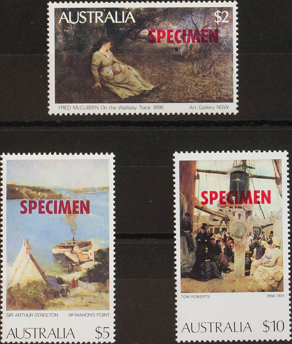 ★★Yvert 624, 654, 739. 1977. 10$ multicolor, 5$ multicolor y 2$ multicolor. Sobrecarga SPECIMEN. MAGNIFICOS.