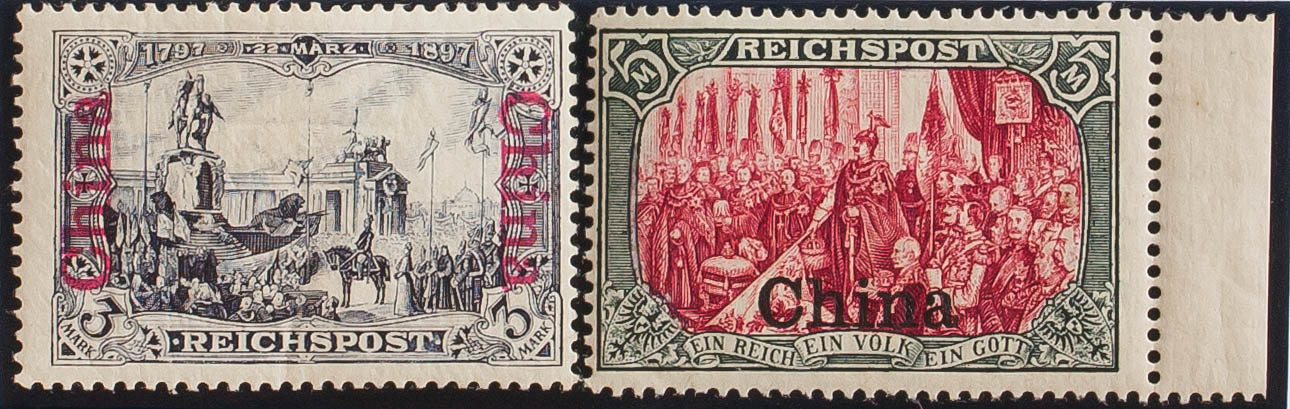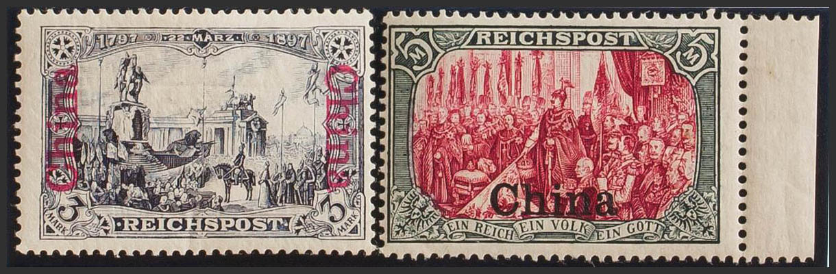 ★Yvert 20, 21. 1901. 3 m violeta negro y 5 m verde negro y carmín. Valores clave. MAGNIFICOS. (Michel 26I, 27II)