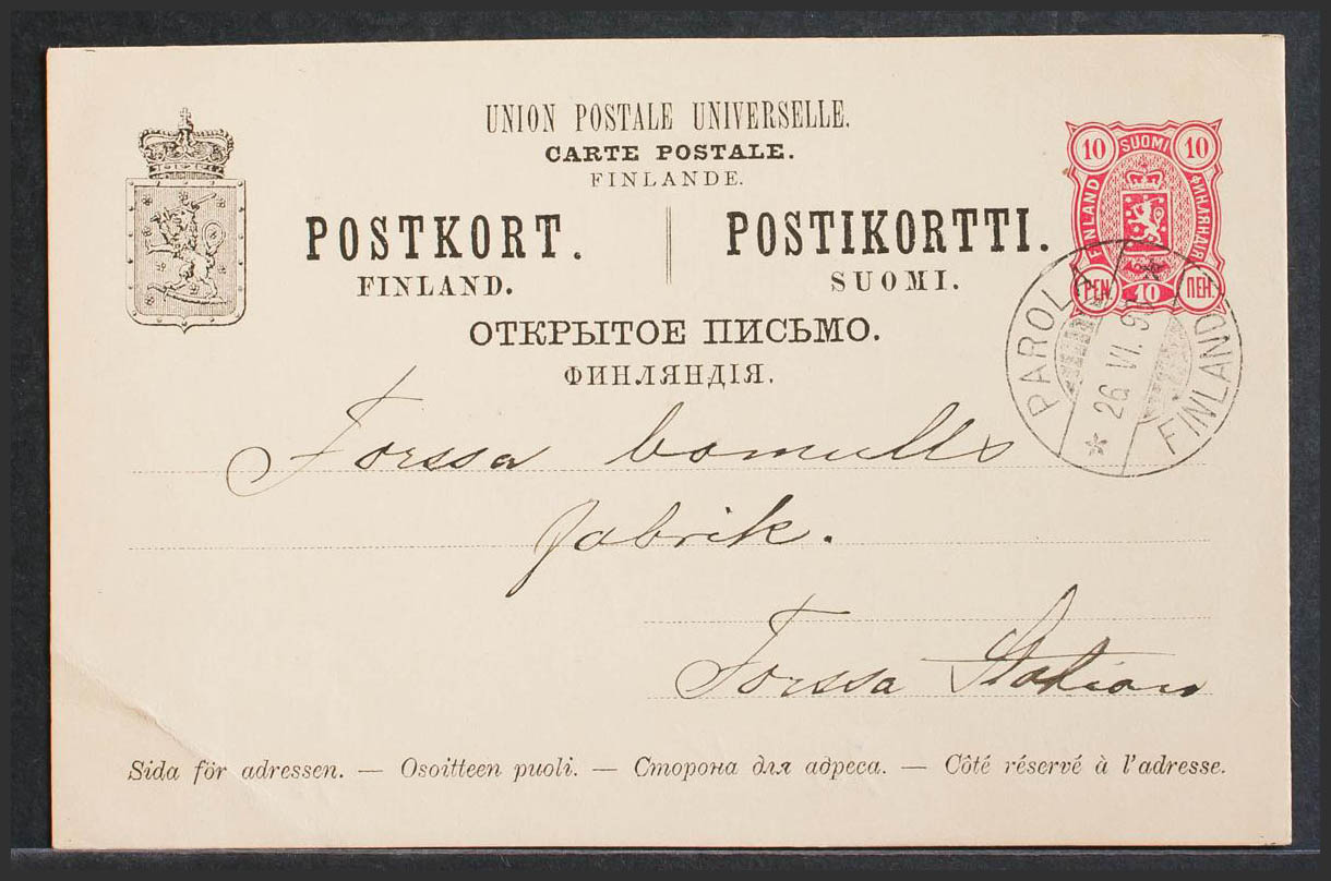 Finlandia. Entero Postal