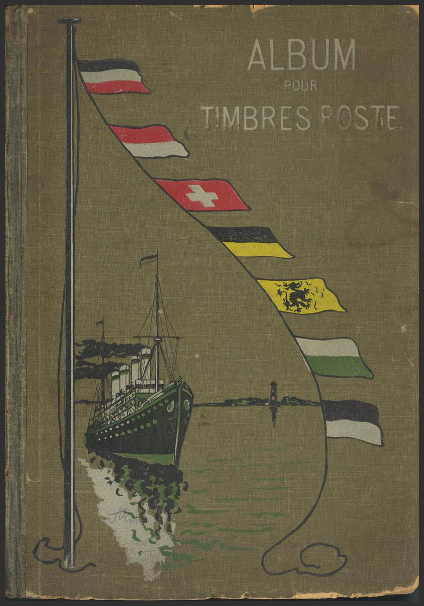 (1900ca). ALBUM PARA SELLOS DE CORREOS (en cuatro idiomas). ¿Alemania, 1900 ca? ¿precursor Schaubek en Español?. (bien conservado). Ex-GRAUS.