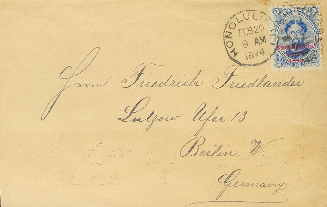 Yvert 48. 1894. 5 ctvos ultramar. HONOLULU a BERLIN (ALEMANIA). BONITA.