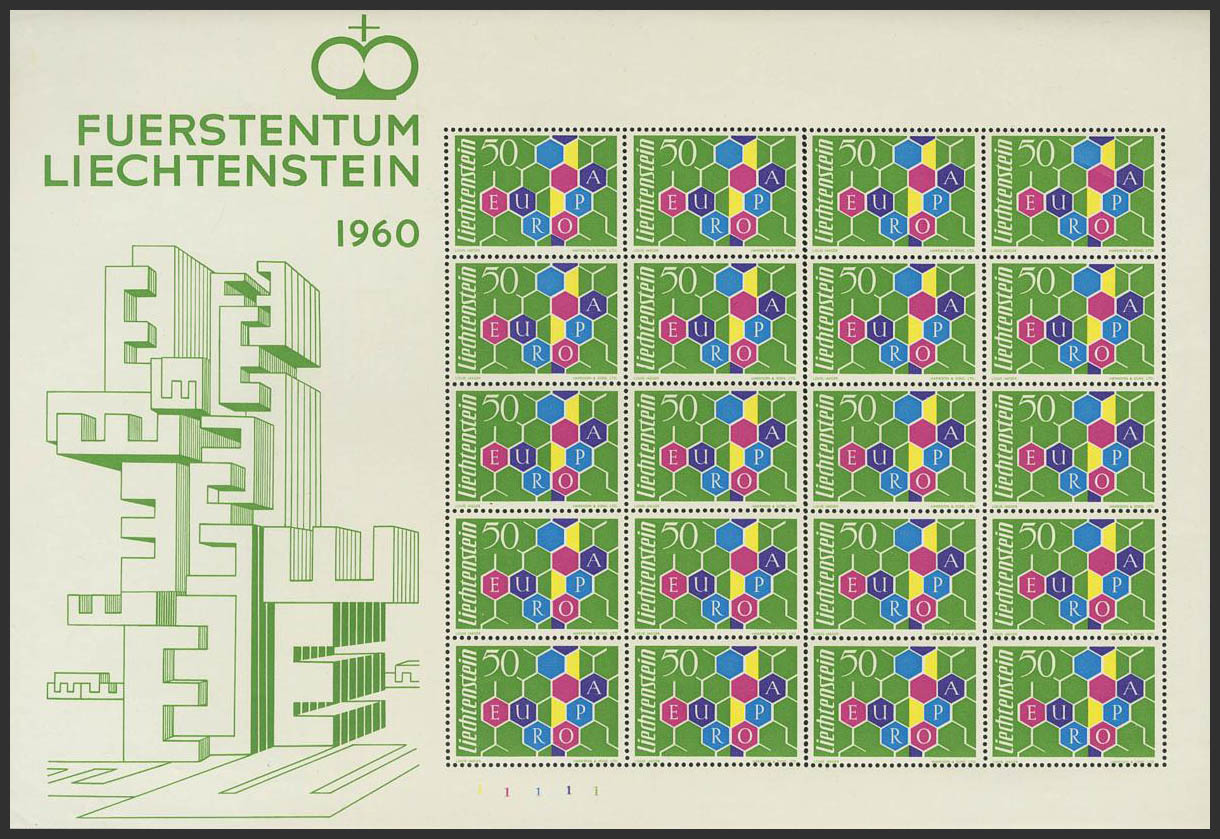 ★★Yvert 355(20). 1960. 50 cts multicolor, minihoja de veinte sellos. MAGNIFICA Y RARA. Yvert 2016: 2.400 Euros