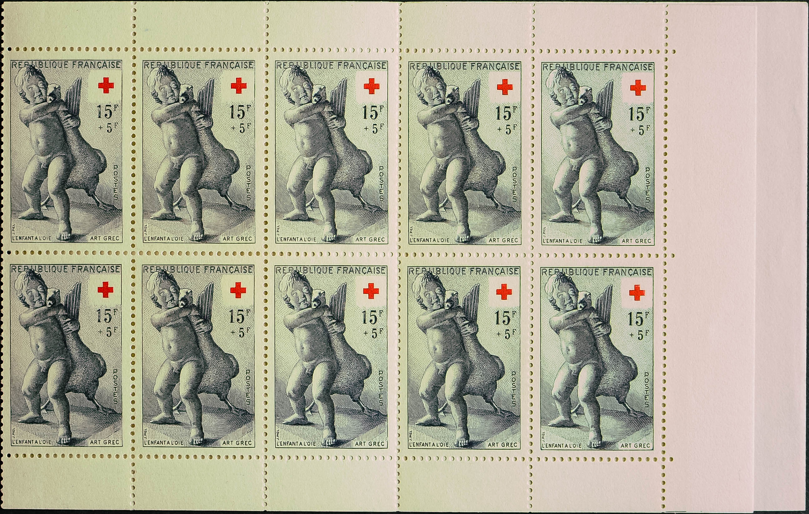 ★★Yvert 2004. 1955. 15 f + 5 f azul y rojo, carnet de diez sellos. MAGNIFICO. Yvert 2014: 450 Euros