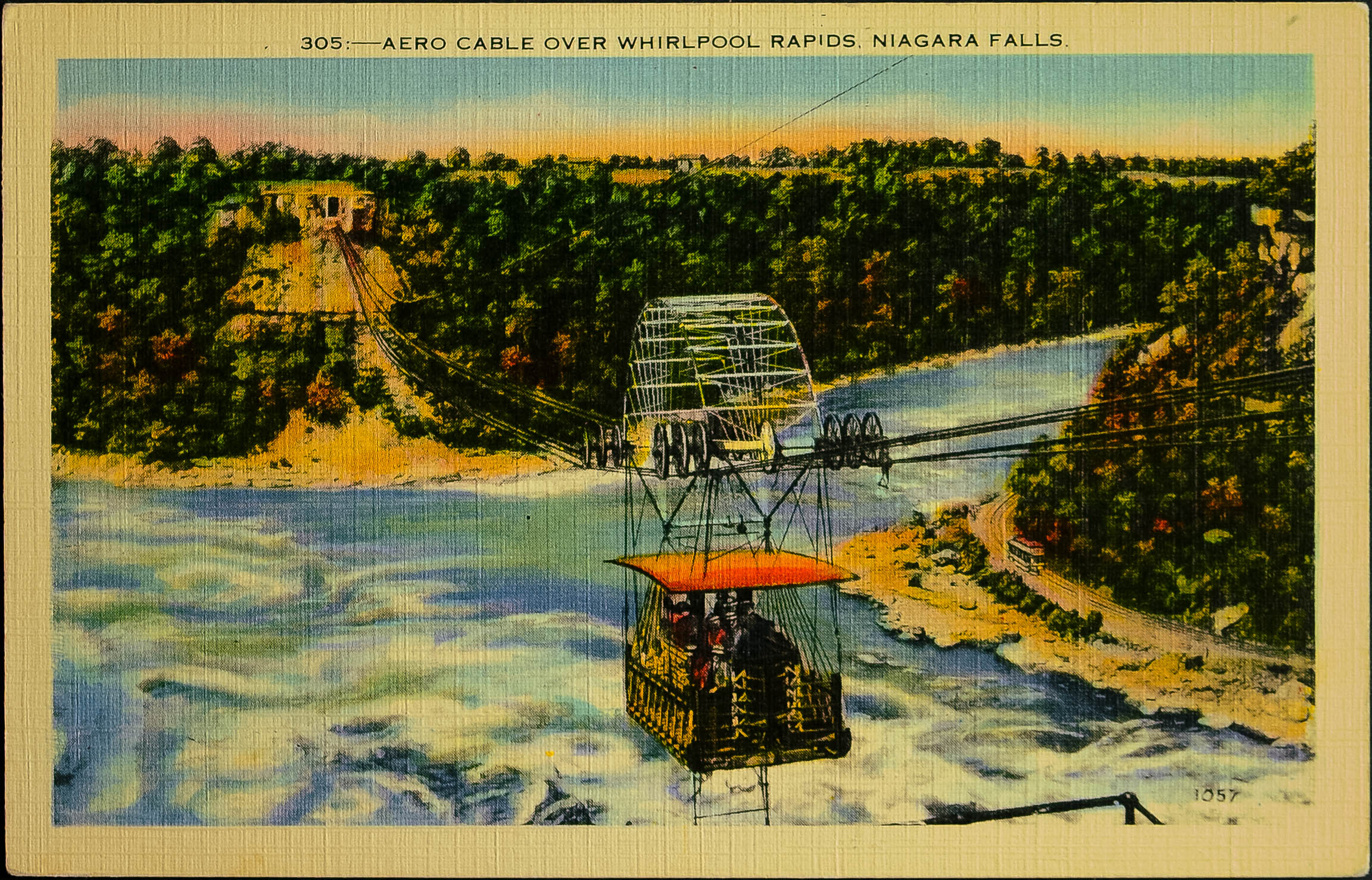 (★)(1910ca). Tarjeta Postal Ilustrada. AEROCABLE OVER WHIRPOOL RAPIDS NIAGARA FALLS, del ingeniero español Leonardo Torres Quevedo. MAGNIFICA.