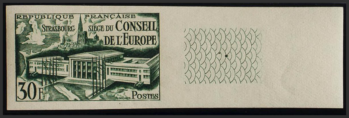 ★Yvert 923a. 1952. 30 f verde, borde de hoja. SIN DENTAR. MAGNIFICO. Yvert 2014: 575 Euros