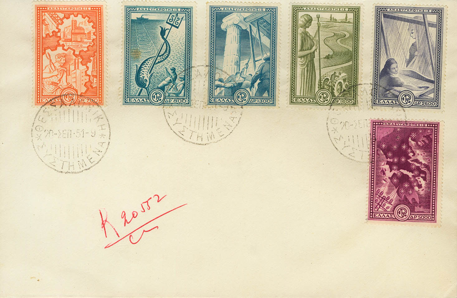 Yvert 575/80. 1951. Serie completa. Sobre de Primer DÃa. MAGNIFICO.