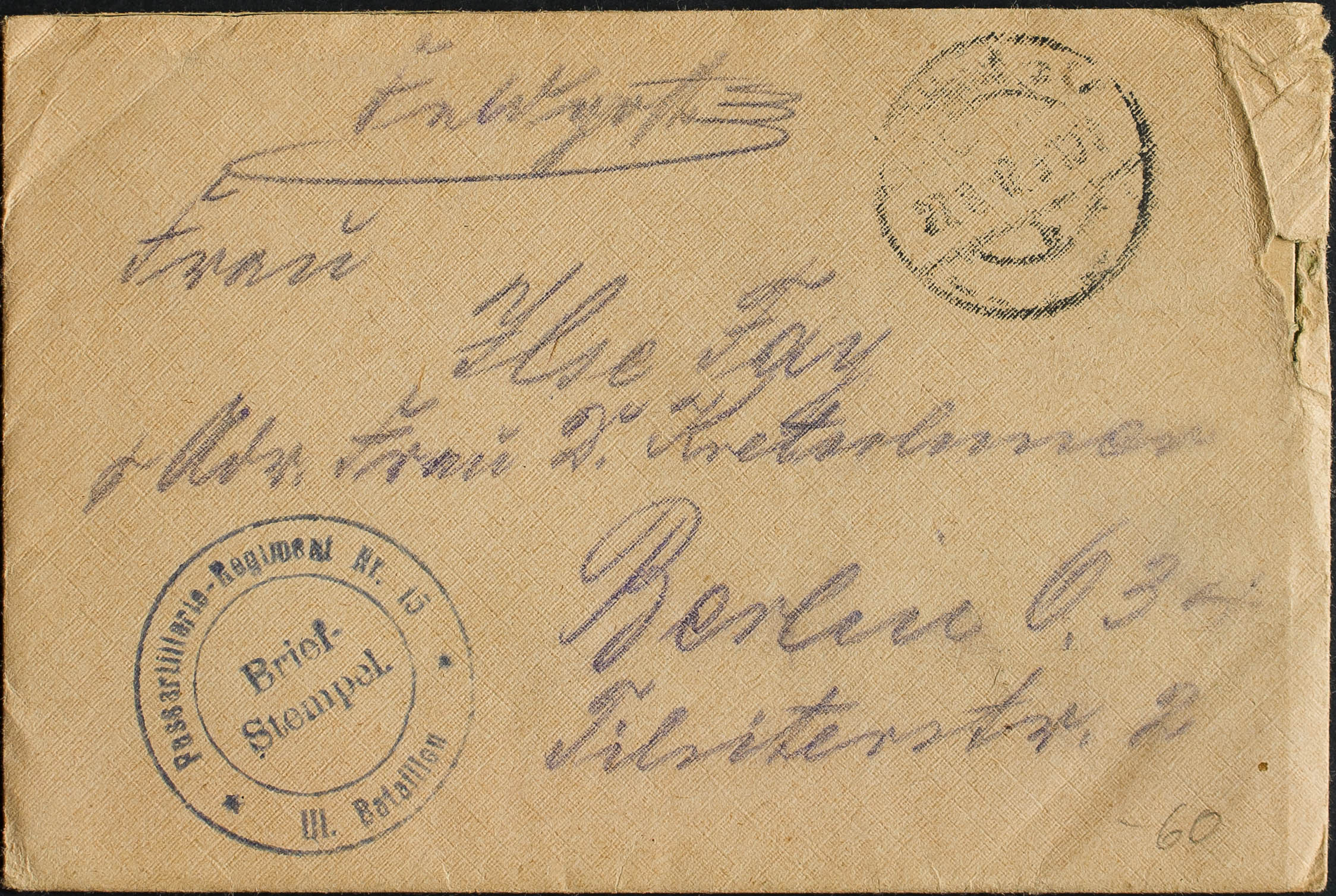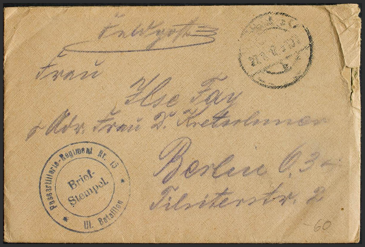 1917. Dirigida a BERLIN. Marca de franquicia PASSARTILLERIE-REGIMENT NR.15 / BRIEF / STEMPEL / III BATAILLON. MAGNIFICA.